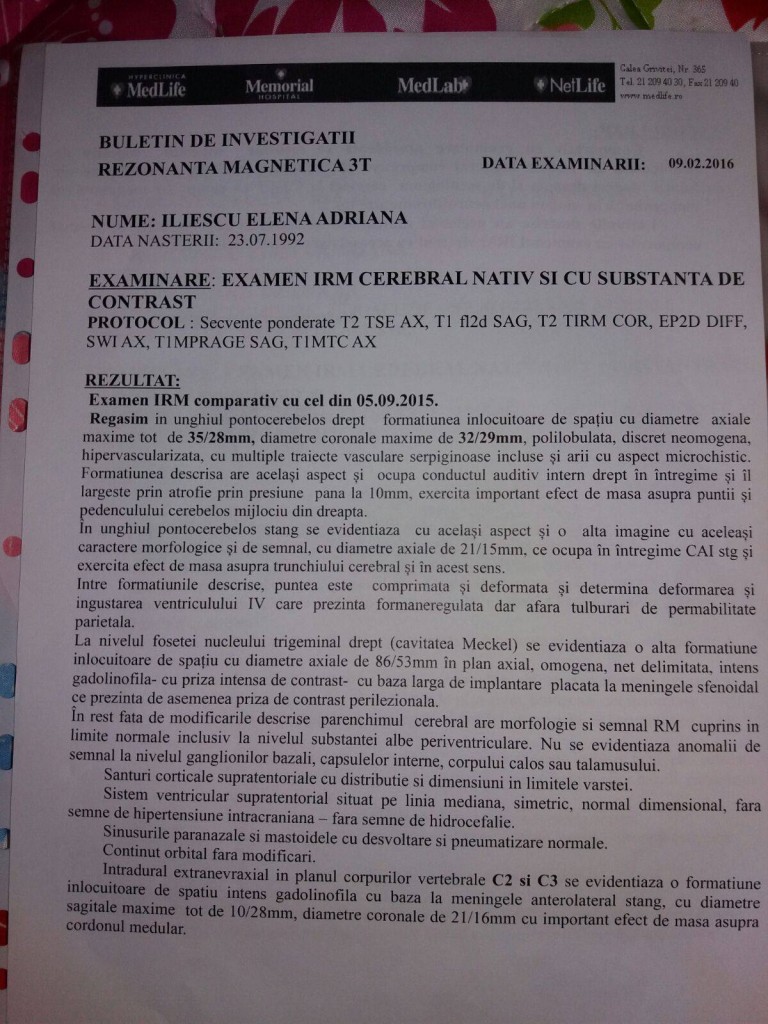 Dupa multi medici si multe pareri, Ada a aflat ca trebuie sa se opereze in strainatate si asteapta acum o estimare de la clinica din Hanovra – International Neuroscience Institute. Din informatiile pe care le are pana acum ar fi nevoie de 40.000 euro, o suma uriasa pentru o tanara care tocmai a terminat facultatea. Insa, avem incredere.